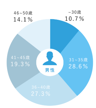 計画的にライフプランを立てている方のなかには、20代で入会する方もみられます。各年代においては、将来を見越して真面目に婚活に取り組む、地に足の着いた男性が多いです。