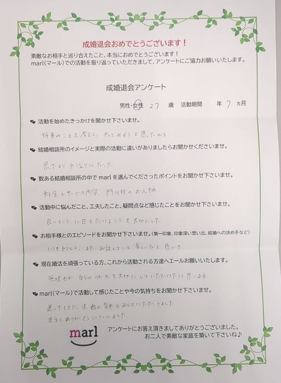 【ご成婚レポート】27歳女性|活動7ヶ月で年上男性とご成婚🌸✨