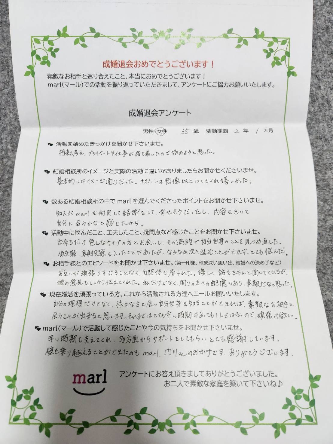 marlを知ってくださったきっかけは、実際に成婚されたご友人の存在。